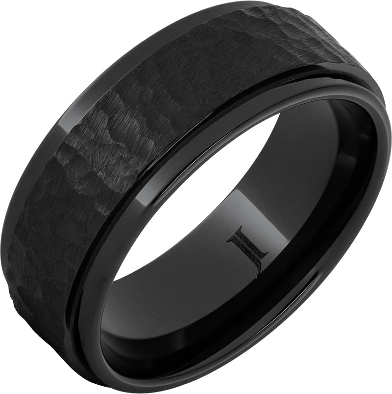 Black Diamond Ceramic Beveled Ring With Moon Crater Finish