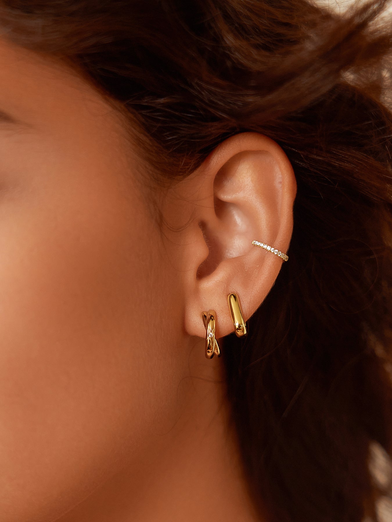 When youre ready to give your hoop collection a unique update, these stunning double cross hoops are the perfect choice. Theyre the on-trend addition you didnt know your jewellery collection was missing. Wear them as a statement piece or stack them up with an ear full of studs and cuffs.