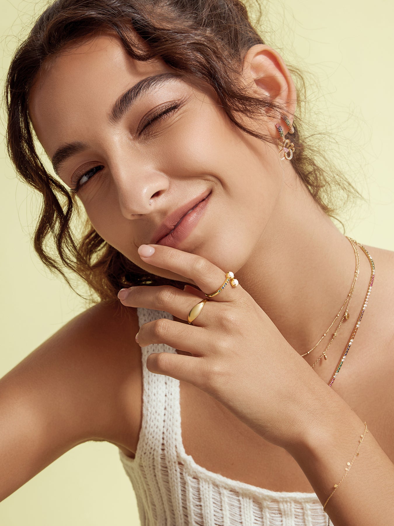 With a curved shape from wide to narrow, this simple yet striking piece is crafted from 14kt gold-plated sterling silver. Stack it up with your statement pieces, effortlessly suiting your everyday wear.