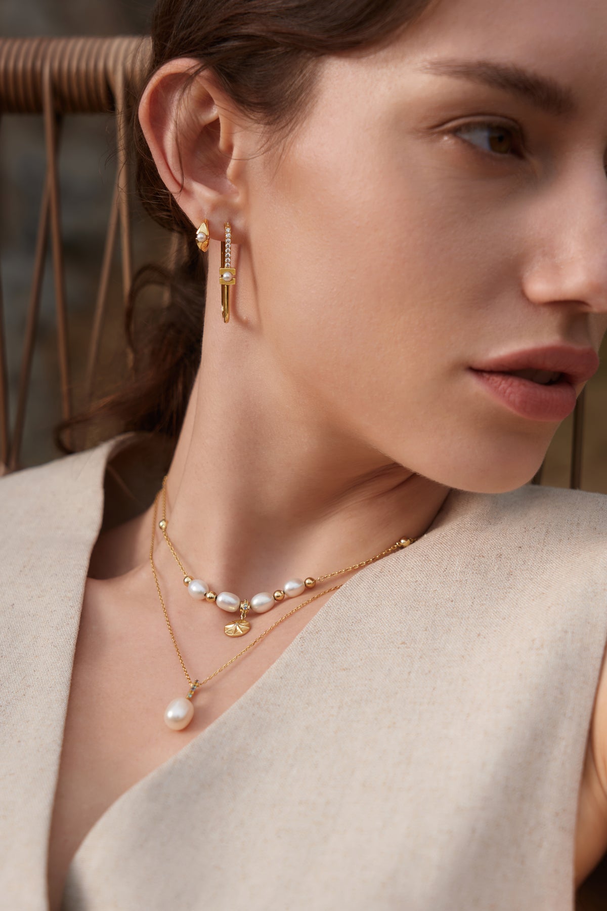 Serving modern sleek lines and nodding to contemporary art references, these gold oval hoops are the perfect choice for those seeking a luxury look. Crafted in 14kt gold-plated sterling silver, a pearl is set in a bold geometric frame, finished with a row of sparkling cubic zirconia. Pair yours with extra sparkle for a chic evening look.