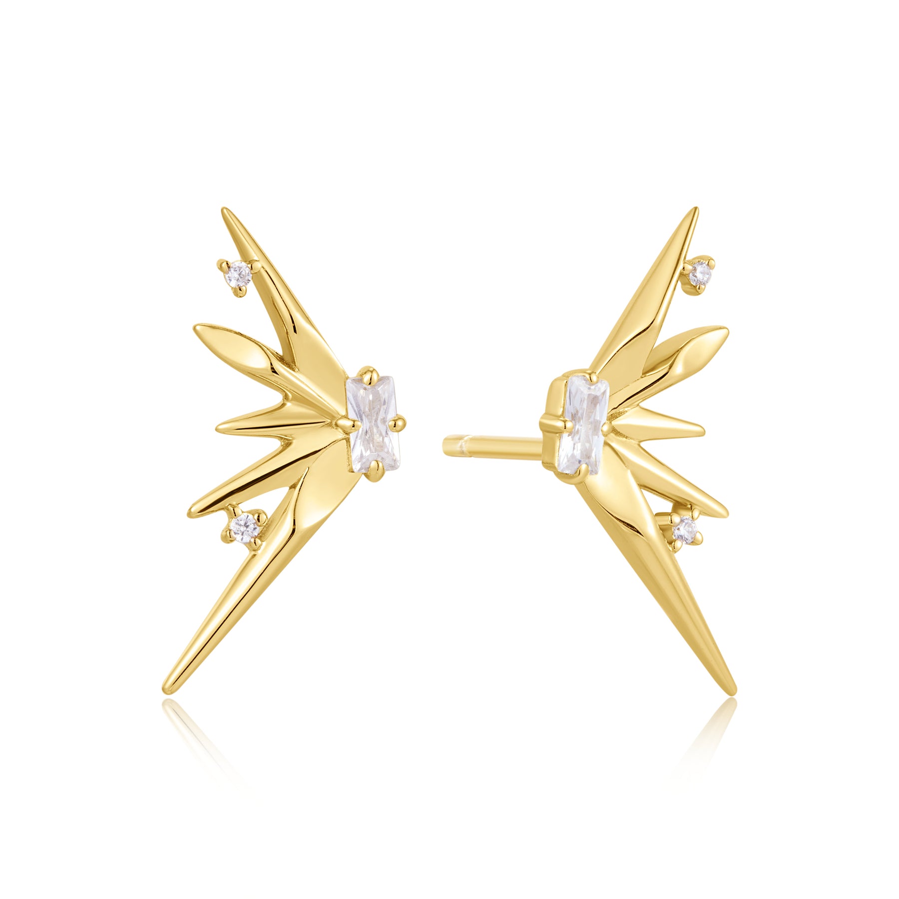 Embrace punk rock this season with these statement studs, packed with sparkle and rockstar energy. Crafted in 14kt gold-plated sterling silver with sparkling cubic zirconia detailing, these bold spike studs add the perfect touch of rock 'n' roll to any look. Add studs or a pair of chain drop earrings to your stack to complete the look.