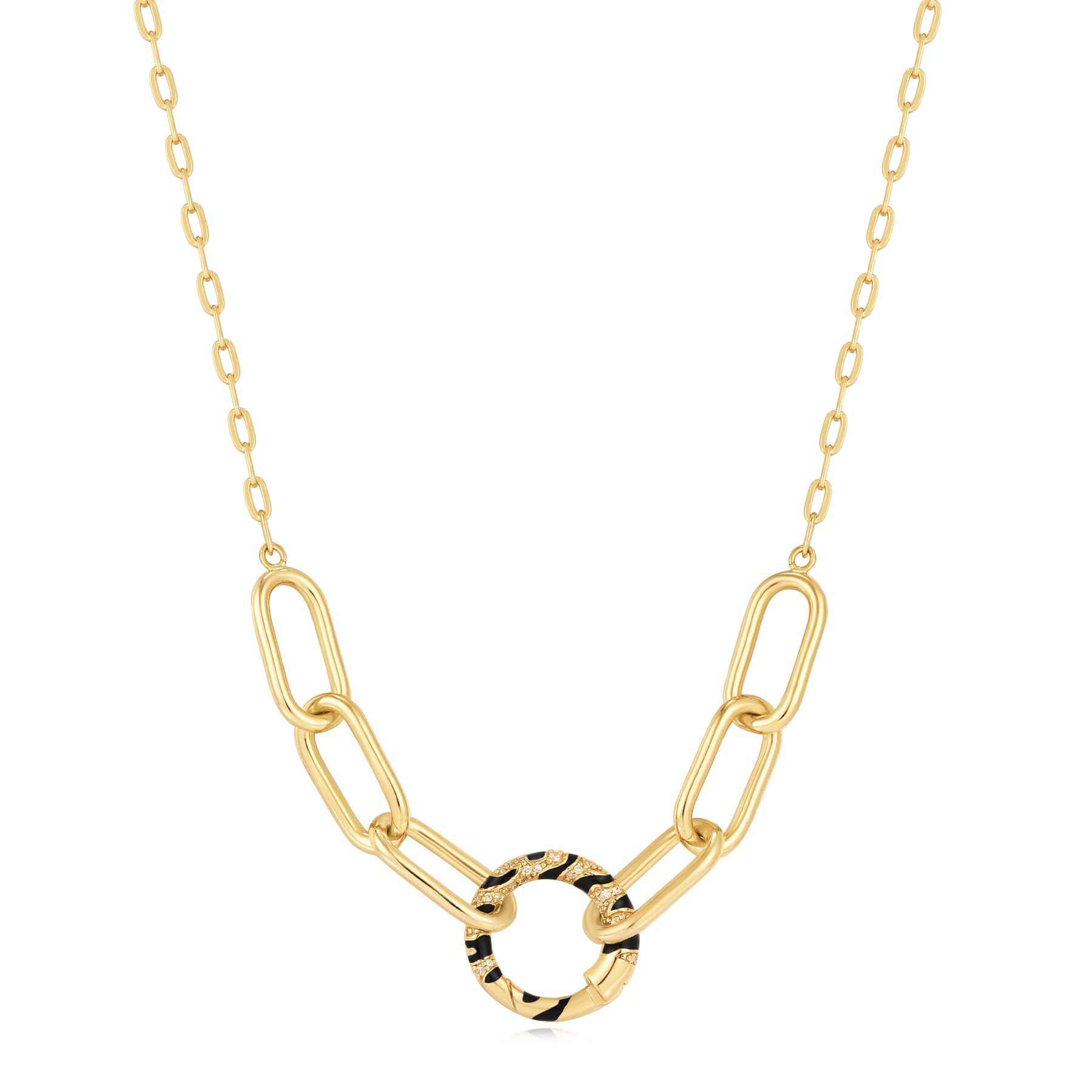 This versatile charm necklace is the latest must-have for your new-season jewellery collection. Crafted from 14kt gold-plated sterling silver, the delicate chain is finished with six chunky chain links, and features a unique tiger stripe connector circle, allowing you to add any of our charms to your look for total customisation.