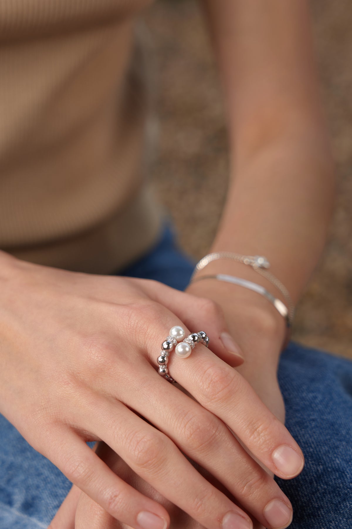 Silver Pearl Sparkle Wrap Ring