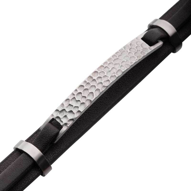 Men's Stainless Steel Brown Leather Strapped with Hammered ID Bracelet. Available Length: 8.25"" - 8.75"".
