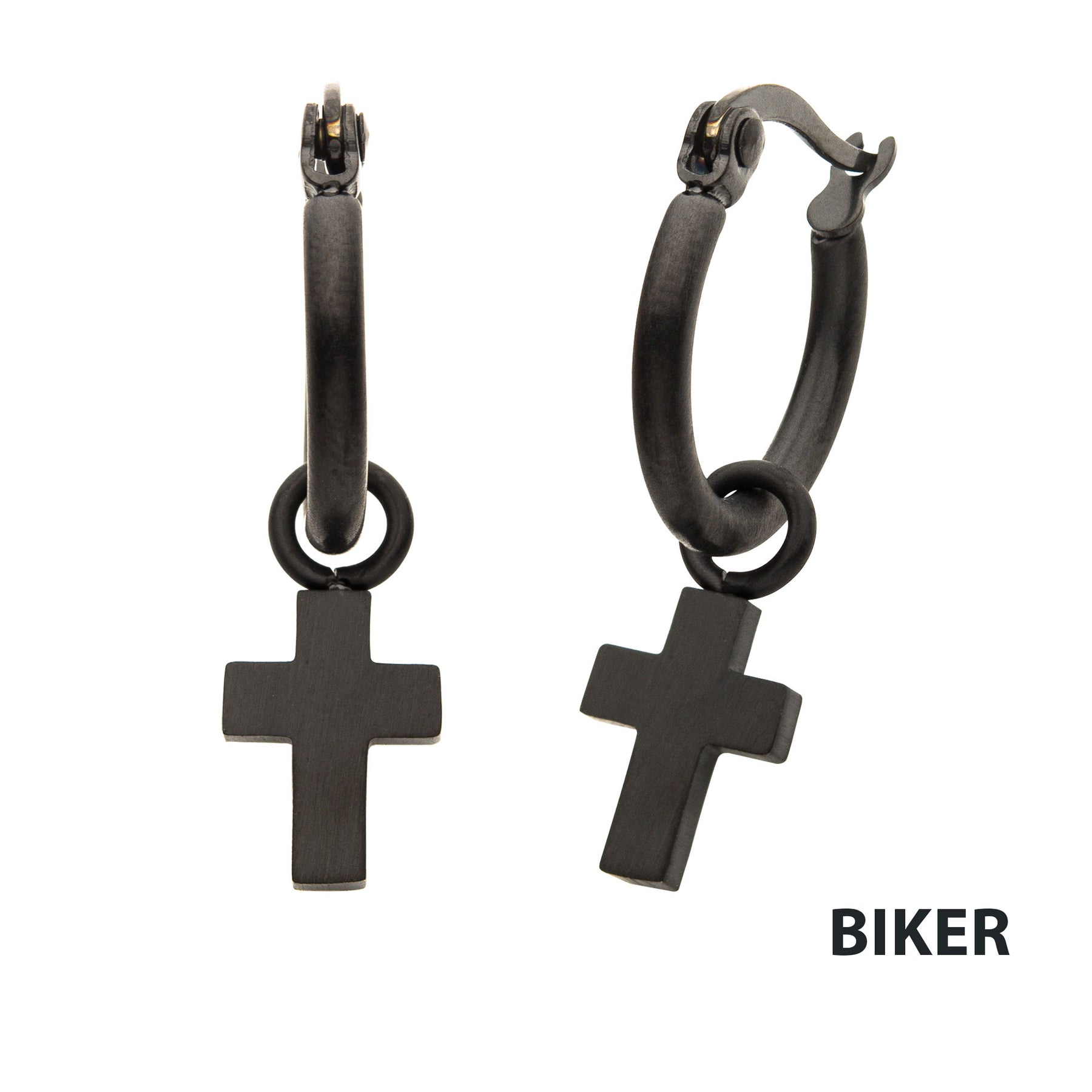 Matte Black IP Hoop with Cross Dangle Earrings