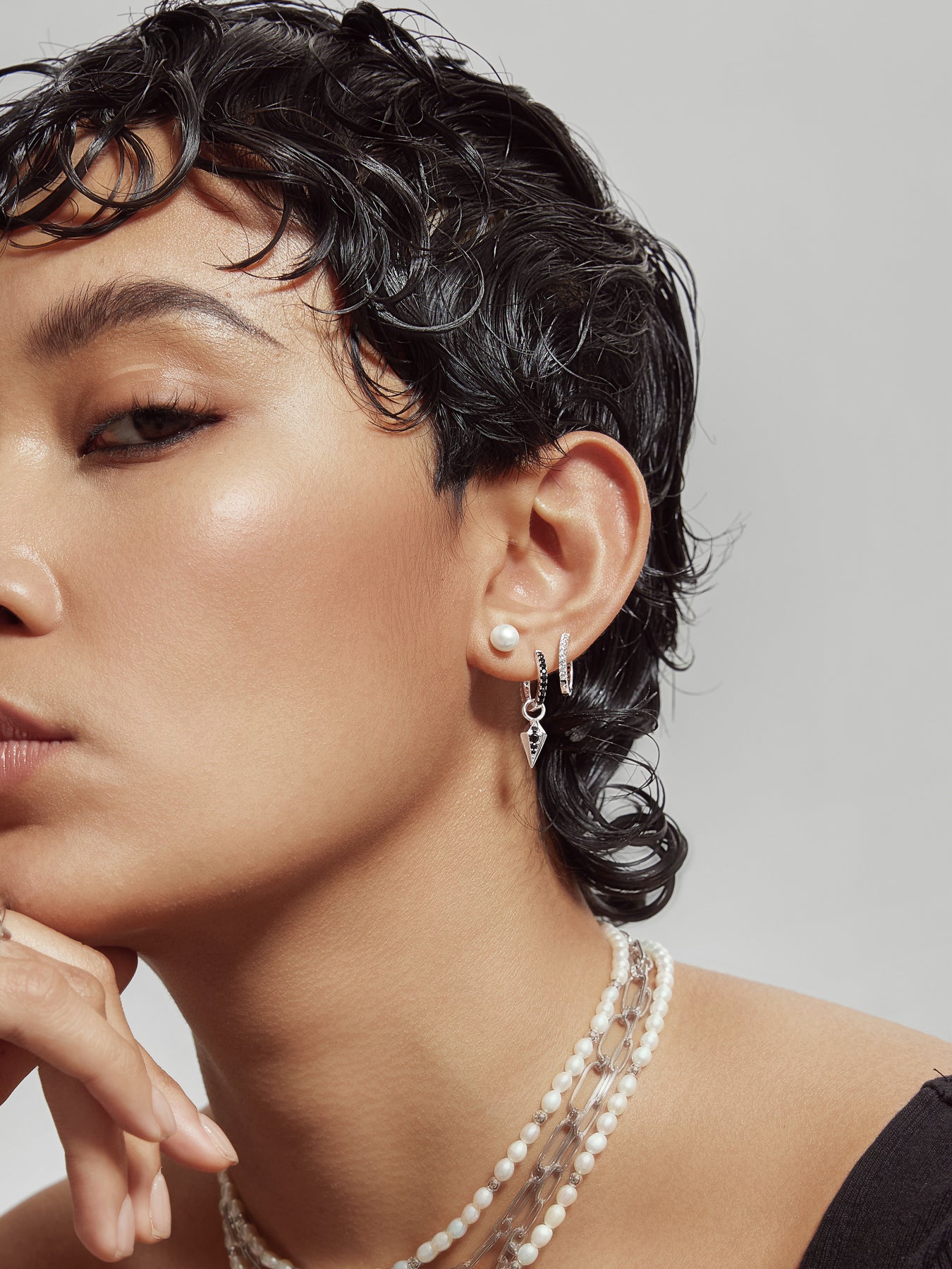 You will definitely fall in love with our reversible mini rhombus earring charm, the two sides of which are black and white respectively. Turn to the other side, switch to another style. Elevate your earrings with this adorable piece or gift it to a loved one.