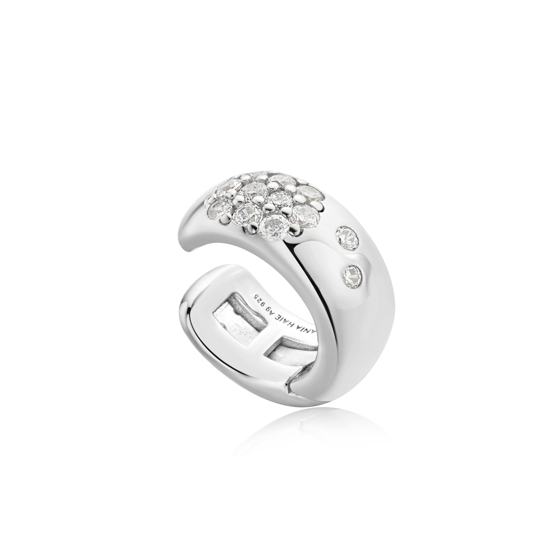 Up the ante when it comes to statement earring stacks with a bold piece that serves all the sparkle. This super-chunky ear cuff is finished with a cluster of shimmering cubic zirconia, crafted in rhodium-plated sterling silver. Simply slide on and style with classic silver huggies for an attention-grabbing ear party.