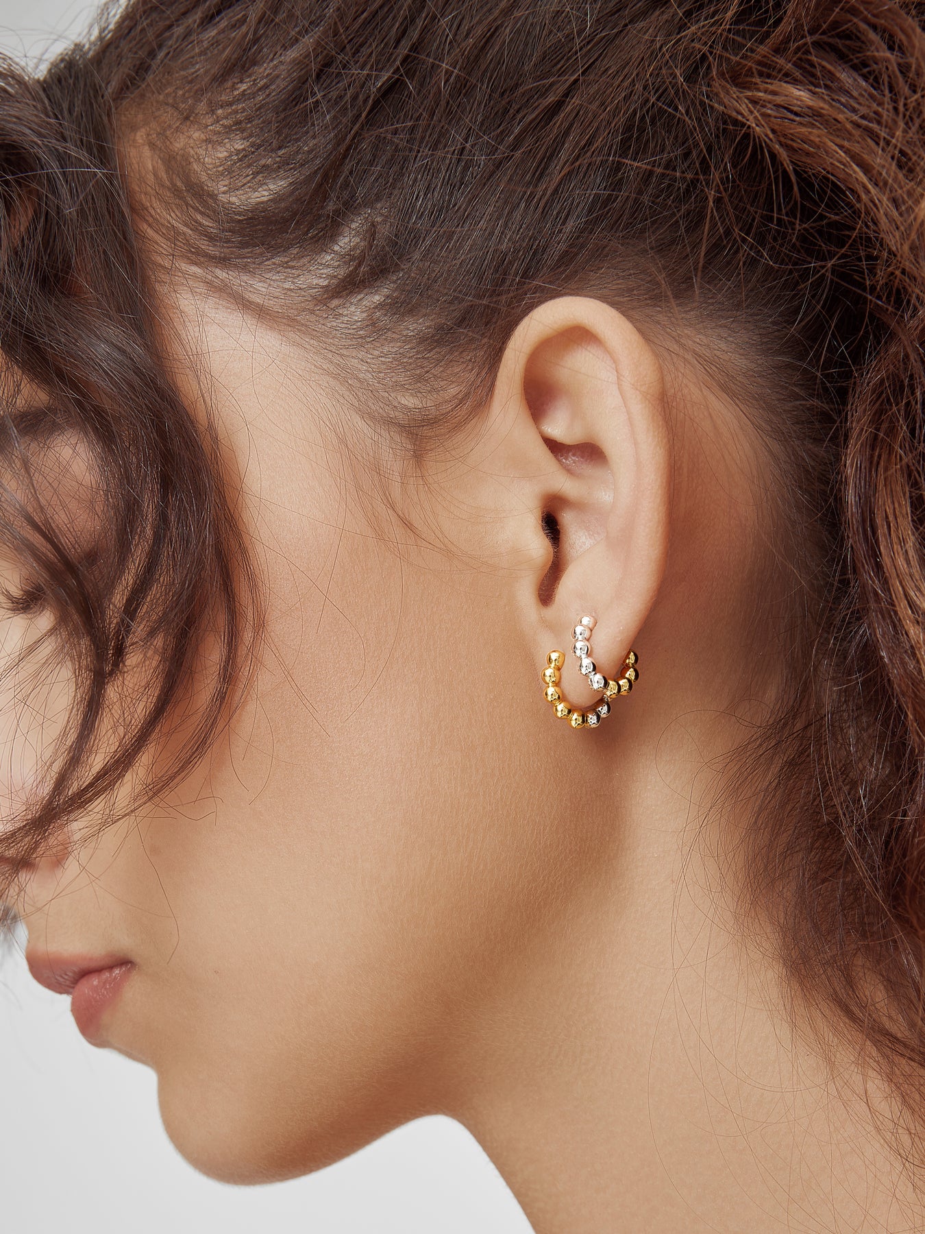 No more worrying about wearing earrings backwards. These two-tone plump huggies are ingeniously designed to be worn on either side, perfect for suiting different dressing styles.