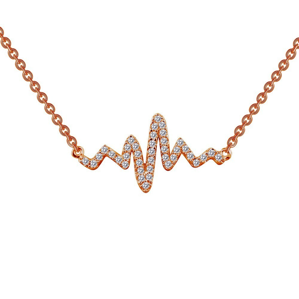 Playful and romantic. This heartbeat necklace is set with Lafonn's signature Lassaire clear simulated diamonds in sterling silver using Lafonn's exclusive TR Gold, a new and improved plating process that preserves the rich color of gold and enhances the wearability of our gold-plated styles.