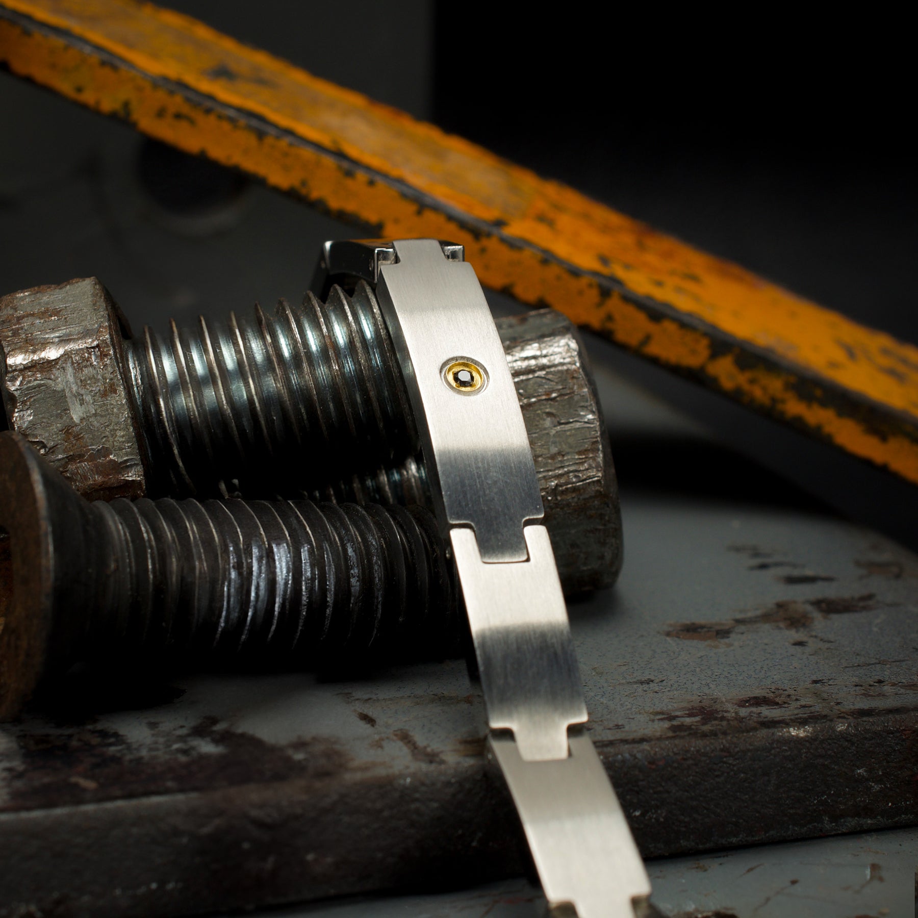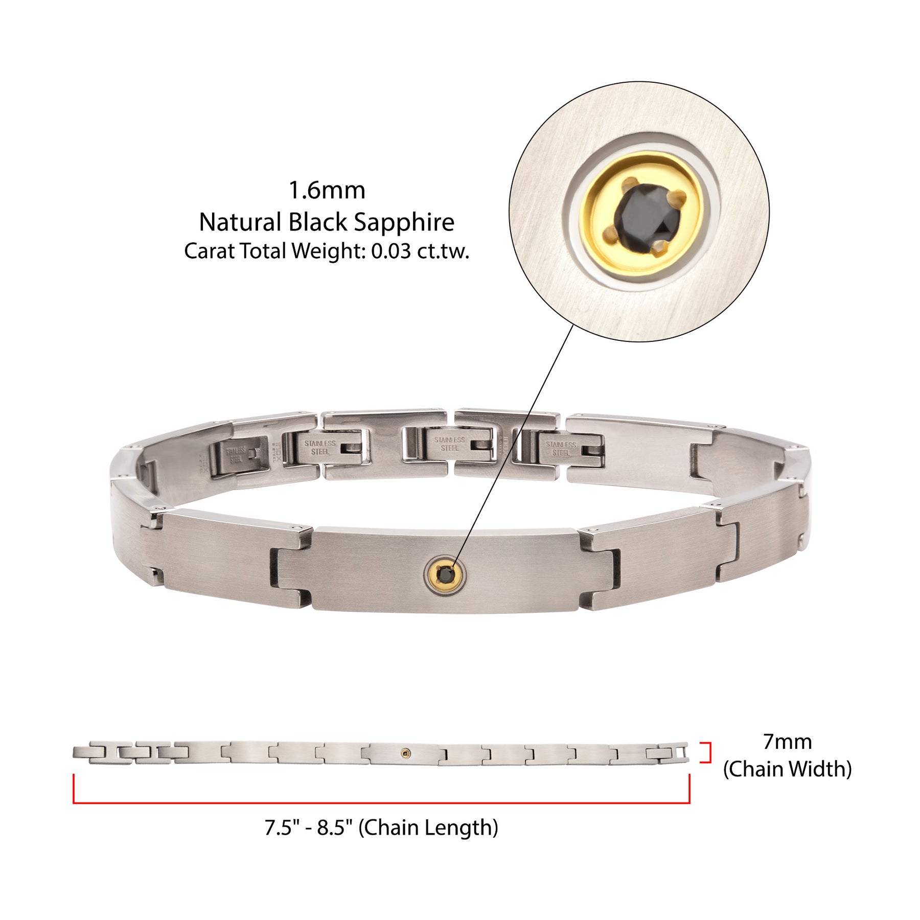 Adjustable classic link design, 7mm wide, with a single gemstone accent for industrial chic appeal. Customizable fit with the luxury of hand-adjustable sizing.