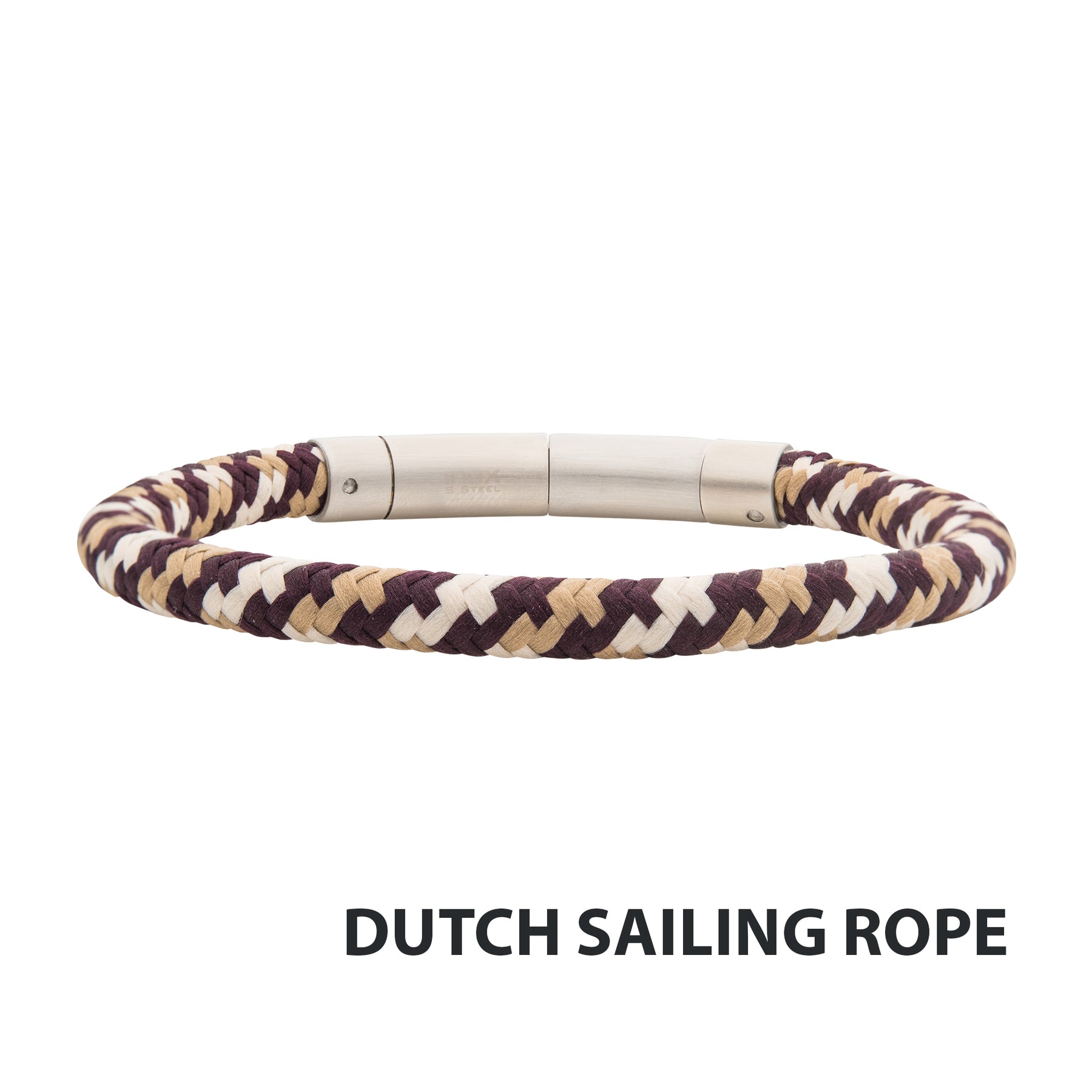 Men's Stainless Steel 6mm Brown, Beige and Dark Brown Nylon Cord with Brushed Tubular Press Clasp Bracelet. Comes with 1 Self-Adjustable Link. Length: 8.5"" - 8"".