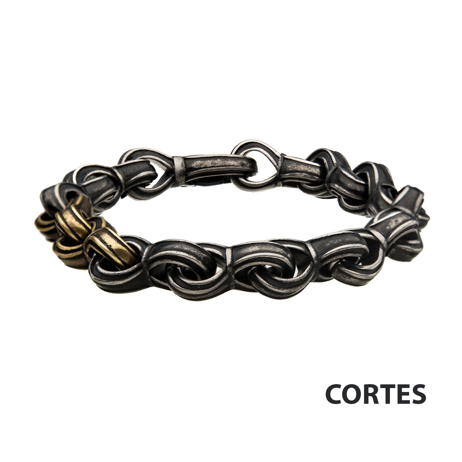 Antiqued Gun Metal Steel & Gold IP Curb Chain Link Bracelet