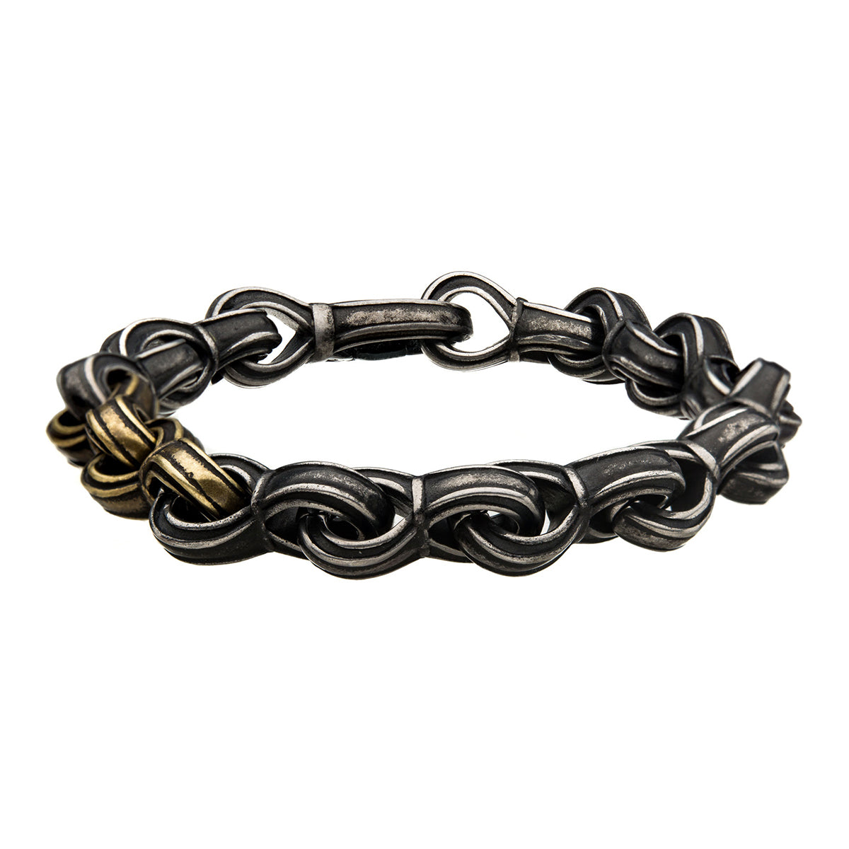 Antiqued Gun Metal Steel & Gold IP Curb Chain Link Bracelet
