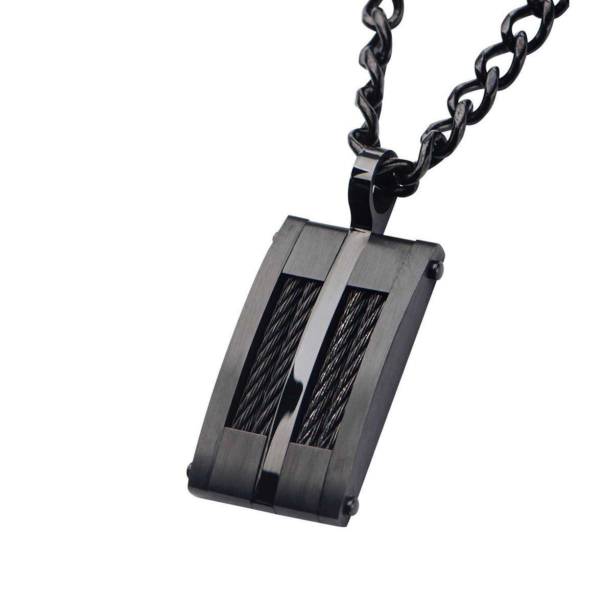 Black IP & Cable Inlayed Dog Tag Pendant with Chain