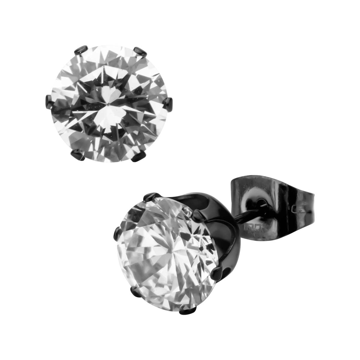 Stainless Steel with Clear Cubic Zirconia in Black IP Solitaire Studs Earrings for Unisex. Available Sizes: 3mm,4mm, 5mm,6mm and 8mm.