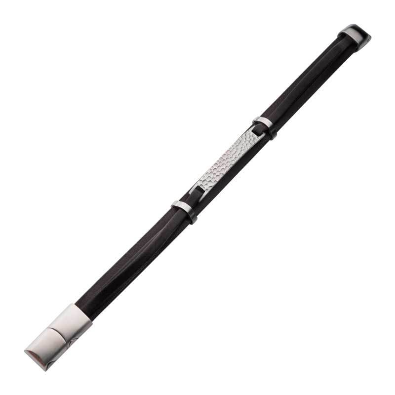 Men's Stainless Steel Brown Leather Strapped with Hammered ID Bracelet. Available Length: 8.25"" - 8.75"".