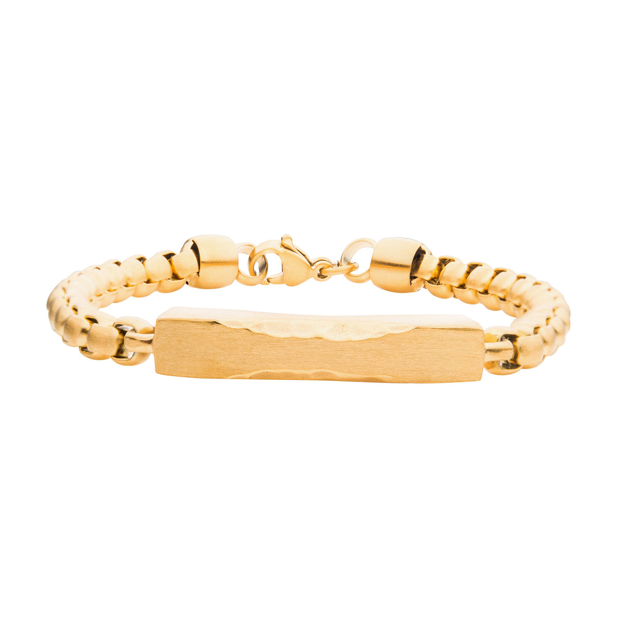 Matte 18Kt Gold IP Chiseled Engravable Drop with Bold Box Chain Bracelet