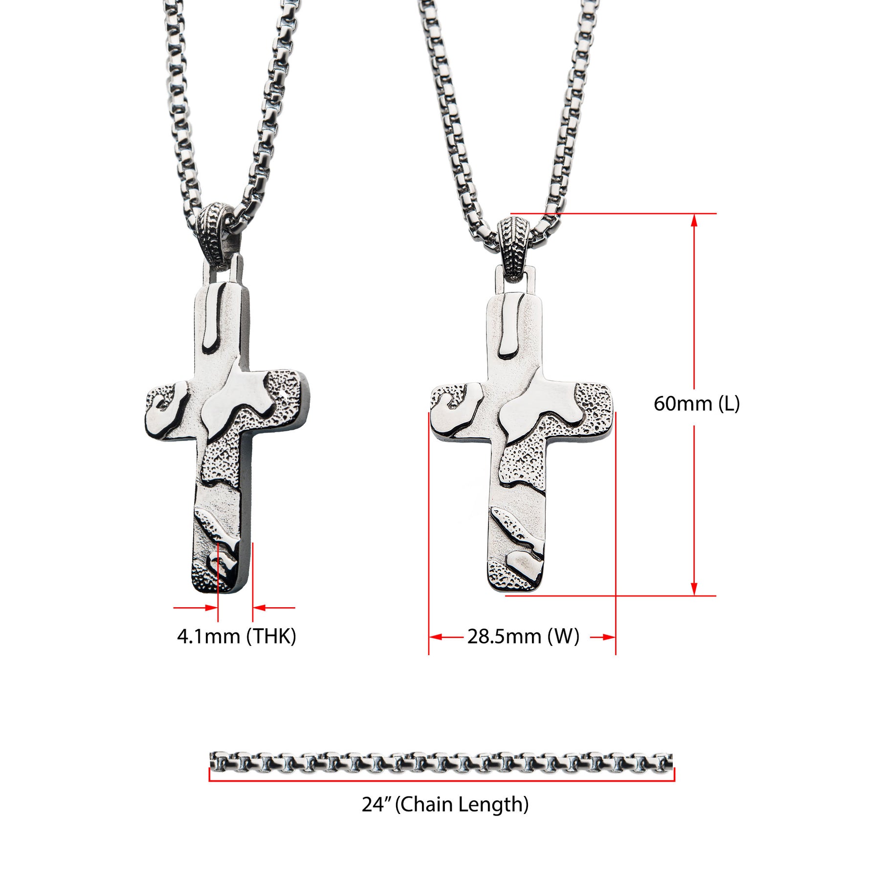 Men's Matte Steel 3D Canyon Pattern Pendant on a Steel Bail with 24 inch long Box Chain. Pendant: 28.5mm (W) x 60mm (H) x 4.1mm (Depth).