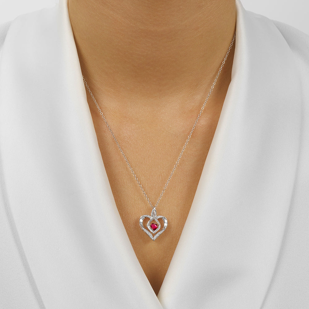 Silver Diamond 1/50Ctw & Created Ruby 1/4Ctw Pendant