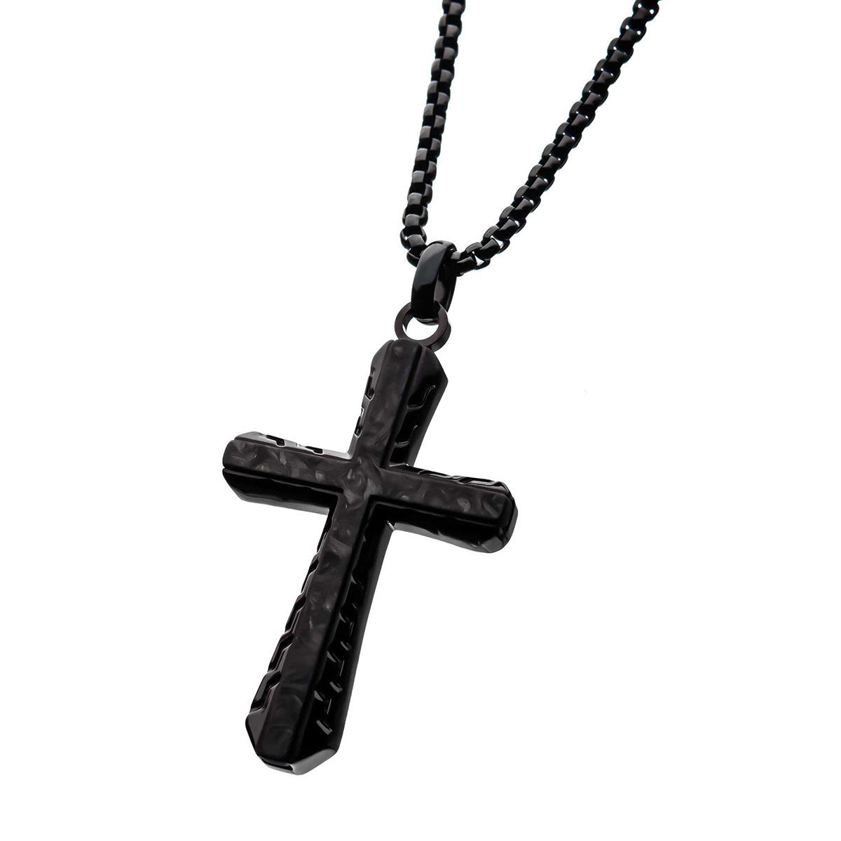 These designs feature of genuine Ebony wood inlay, for a look reminiscent of the One true Cross, resting on top of a rugged steel design in dark finished steel tones. One of the crosses replaces Wood for Patterned carbon composite, for a look similar to the wood, but with a modern and more durable element incorporated.