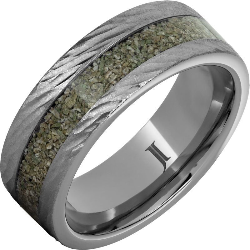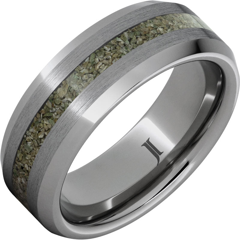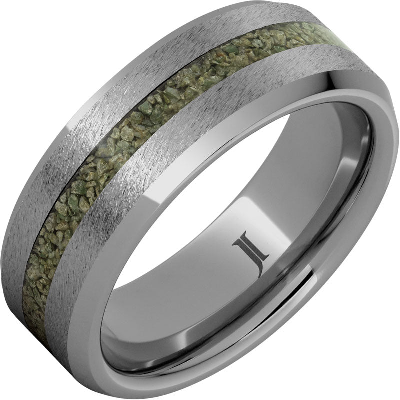 Rugged Tungsten™ Ring with Green Dinosaur Bone Inlay and Stone Finish