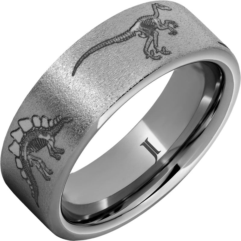 Rugged Tungsten™ Dinosaur Fossil Skeleton Engraved Ring