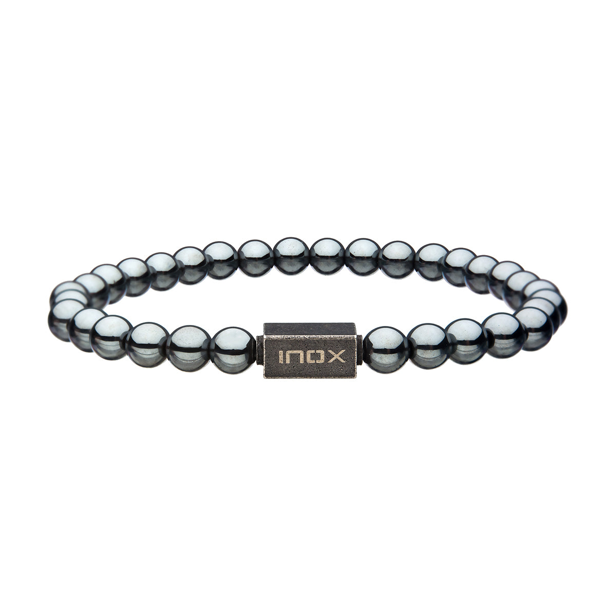 Men's 6mm Hematite Gemstone Stretch Bead Bracelet with Steel Clasp, 8"" long.
