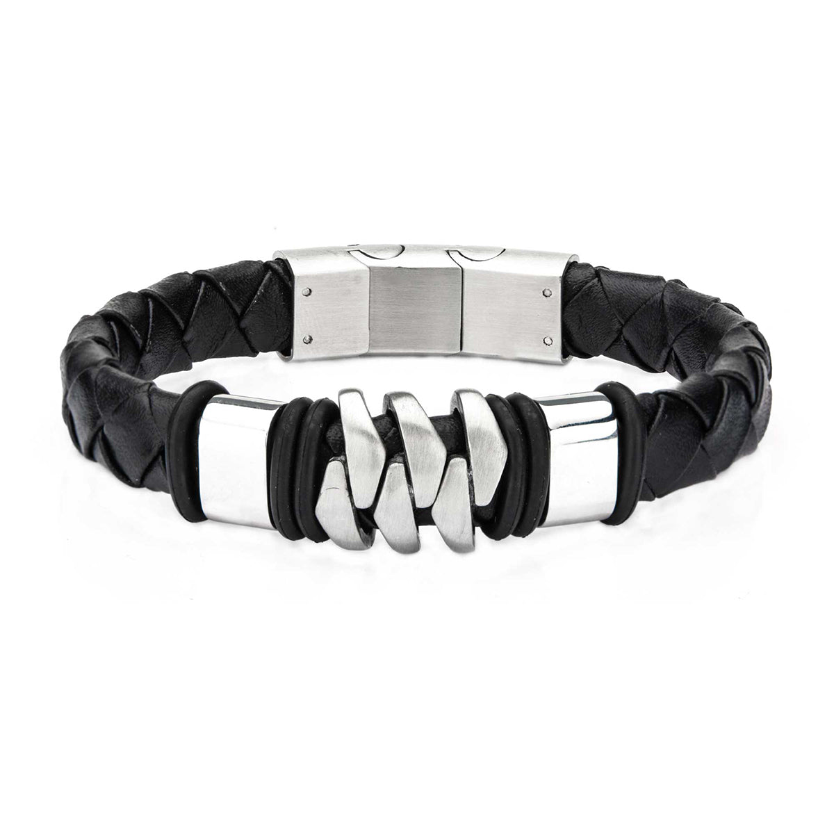 Stainless Steel & Matte Black Leather Bohemian Bracelet