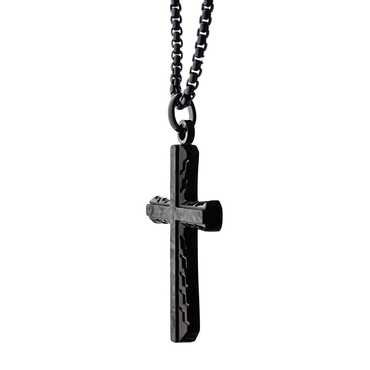 These designs feature of genuine Ebony wood inlay, for a look reminiscent of the One true Cross, resting on top of a rugged steel design in dark finished steel tones. One of the crosses replaces Wood for Patterned carbon composite, for a look similar to the wood, but with a modern and more durable element incorporated.