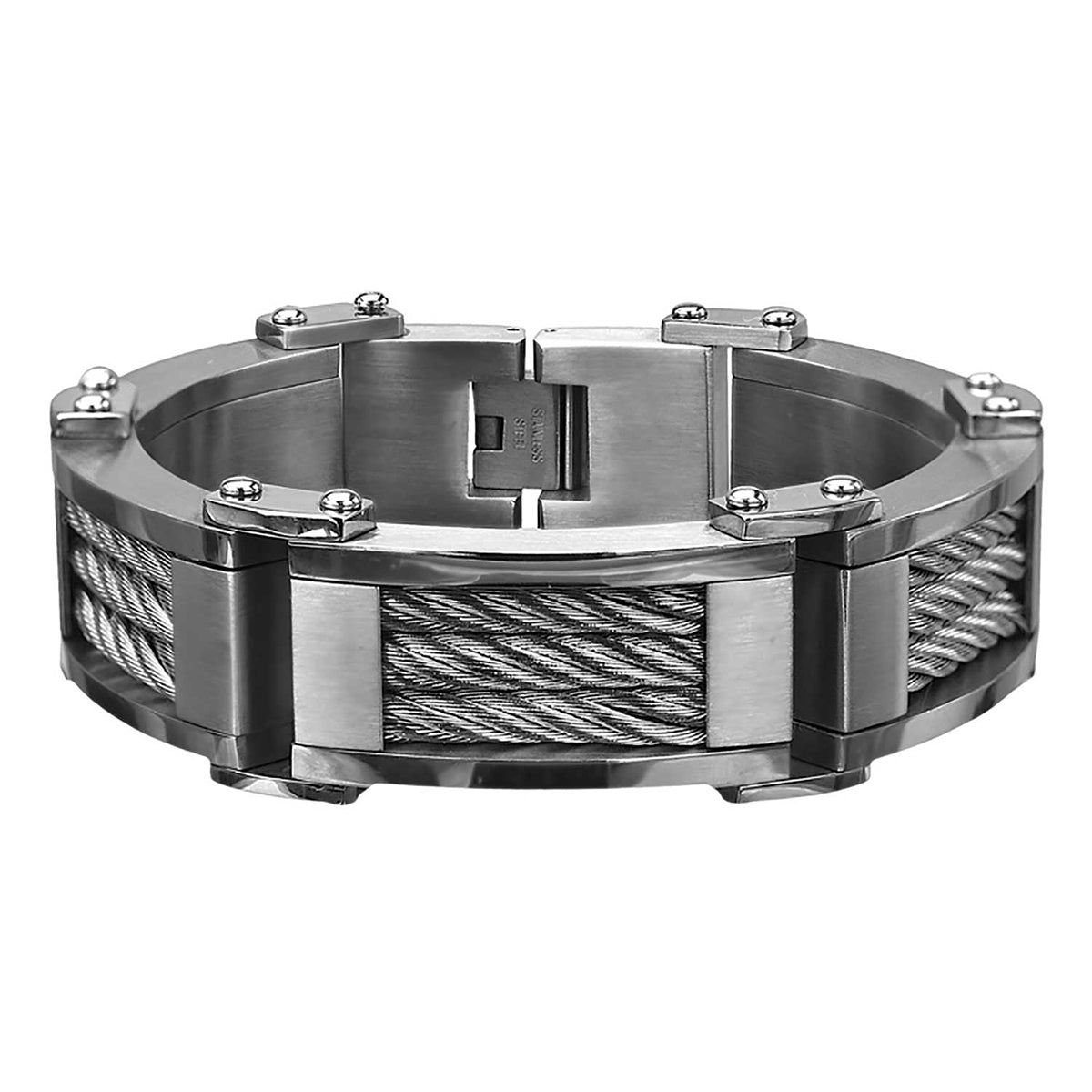 Men's Stainless Steel Three Cable Link Matte & Polish Finished with Fold Over Clasp Bracelet, 8.75"" long.