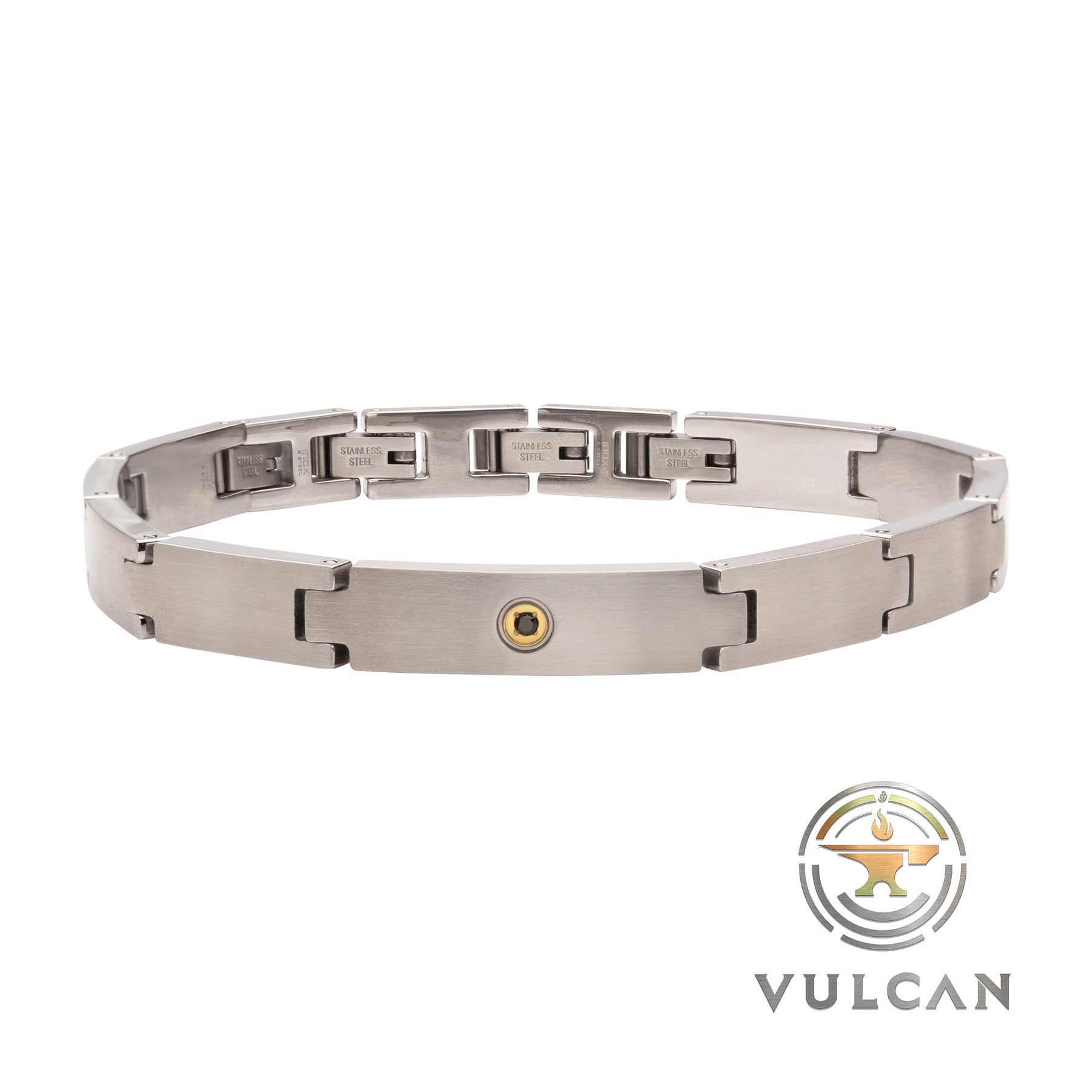 Vulcan Collection - This collection is crafted in the tradition of Vulcan, the Greek god of metalwork and fire. This collection redefines stainless steel design, blending rugged industrial aesthetics with modern sophistication. Each piece, featuring meticulously engineered compact sizes and substantial weight, is accentuated with precision-set 1.6mm gemstones encased in 18k gold IP.