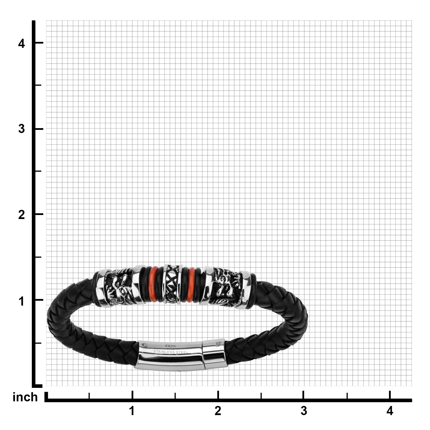 Men's Stainless Steel 12mm Bead Braided Black Full Grain Cowhide Leather Bracelet with Red Silicone O-Ring with Tubular Press Clasp. Comes with 1 Self-Adjustable Link.