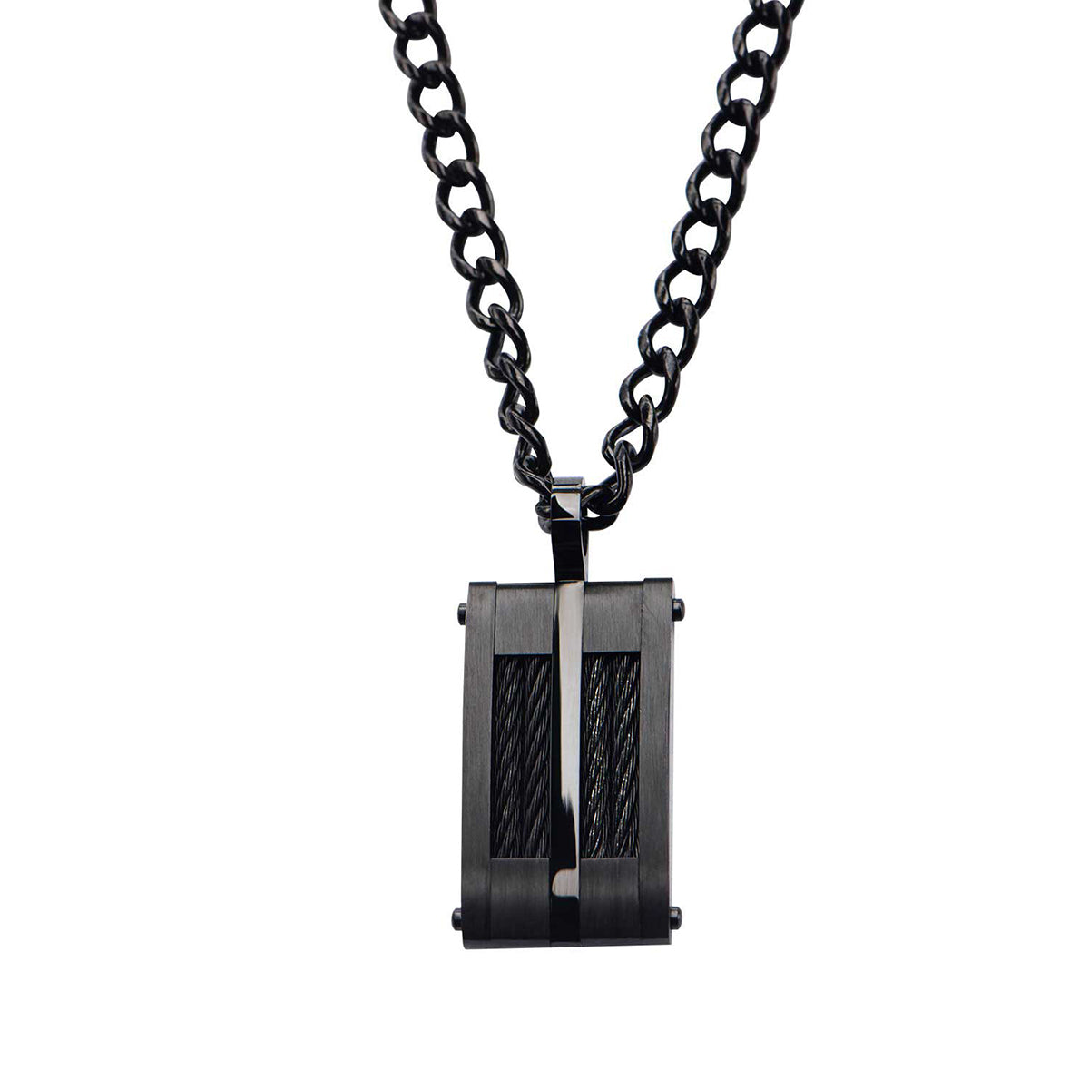 Black IP & Cable Inlayed Dog Tag Pendant with Chain