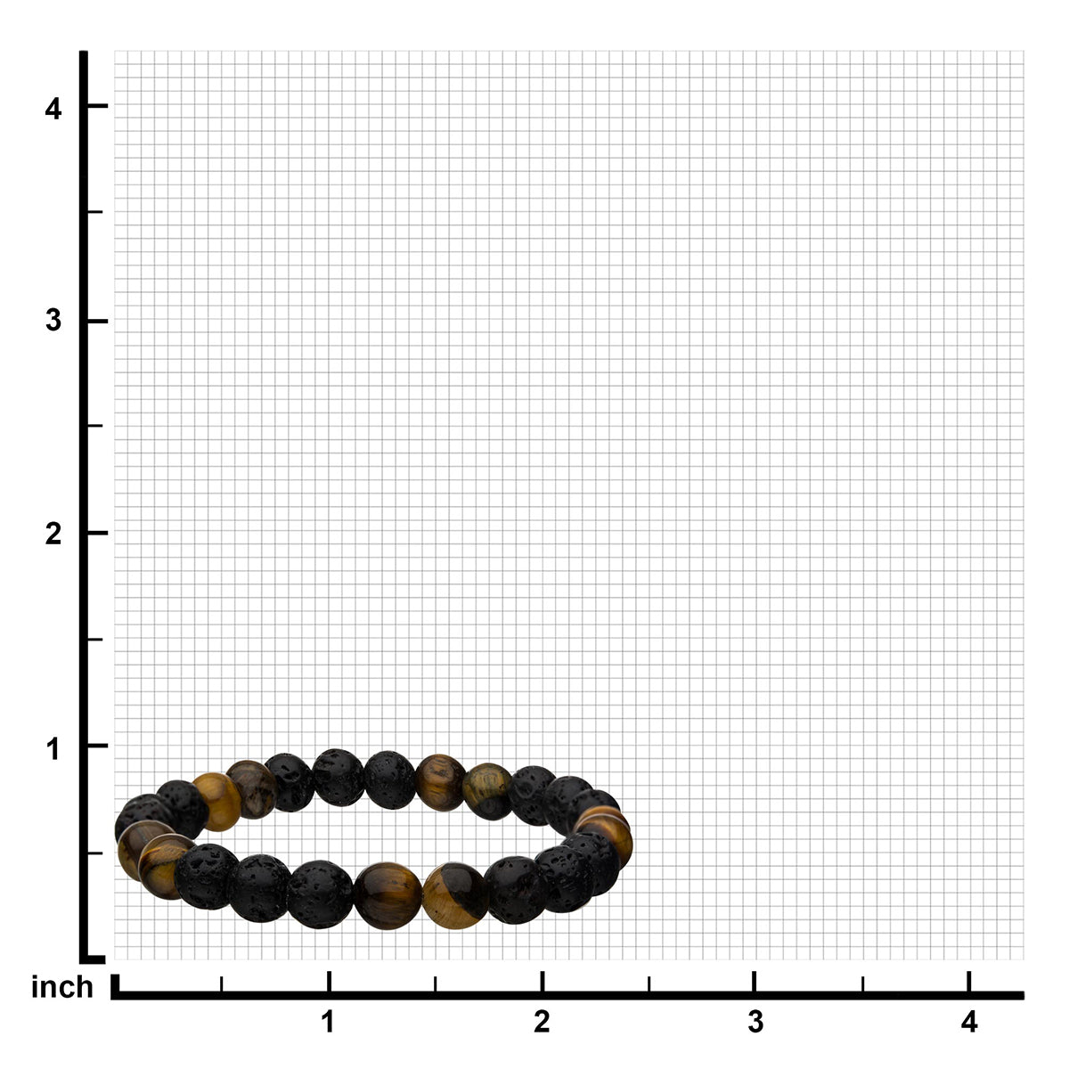 Men's Stainless Steel 25 pcs Lava and Tiger Eye Yellow 8mm Beads Bracelet, 8"" long.