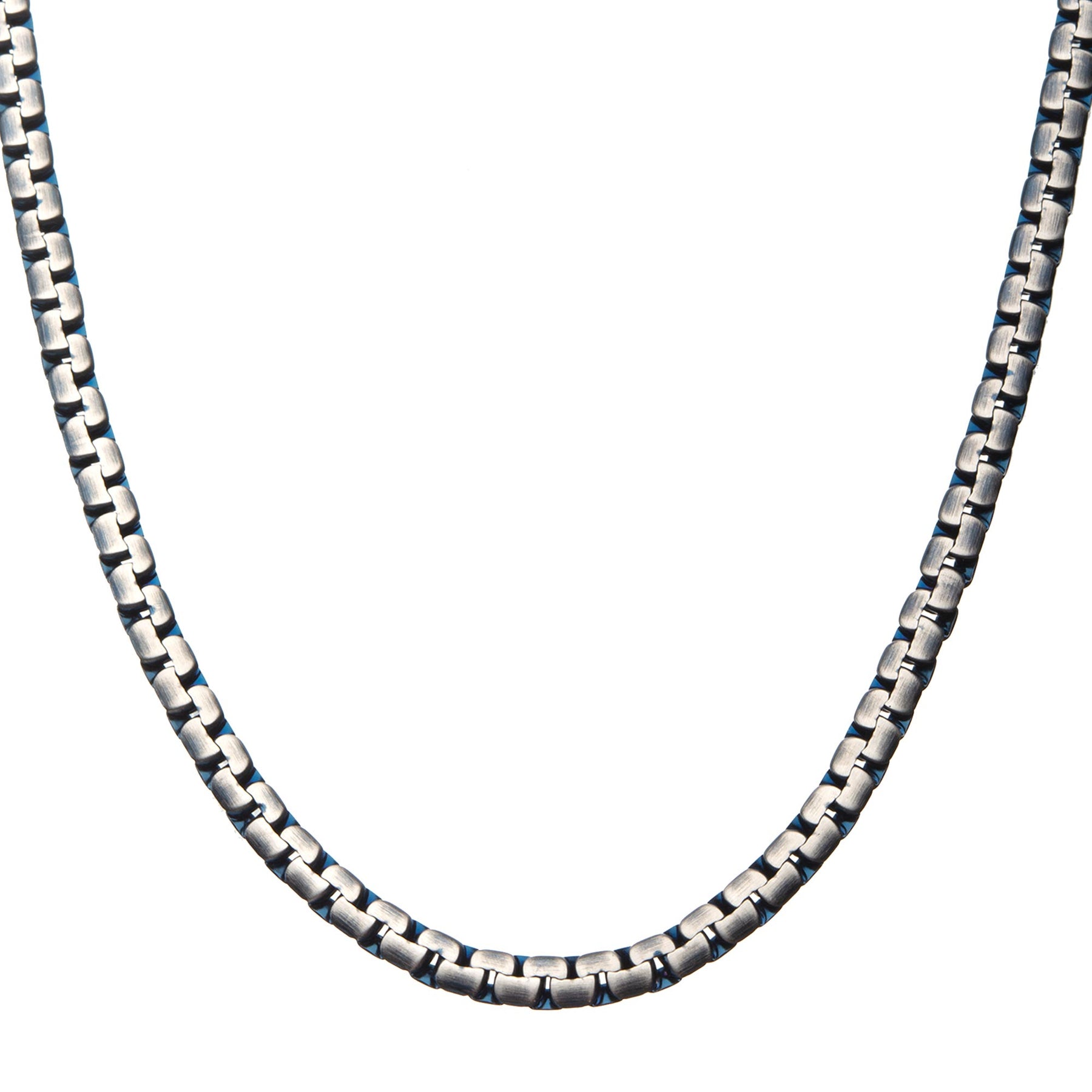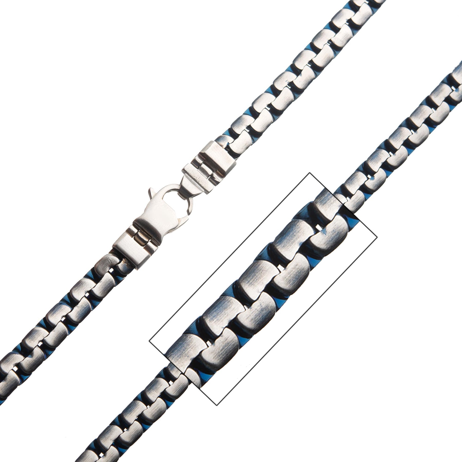 Men's Matte Stainless Steel & Blue IP Reversible 7mm Curb Chain Colossi Necklace.
