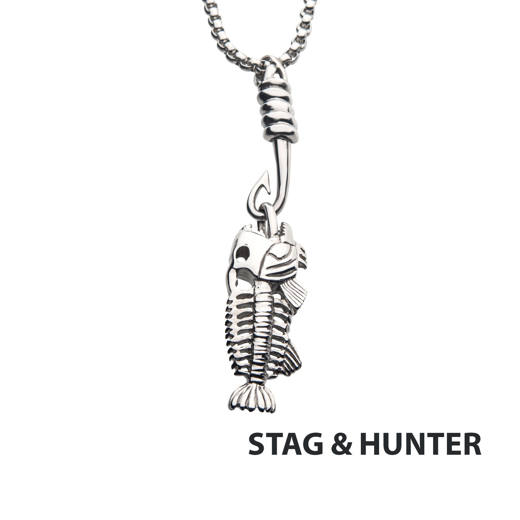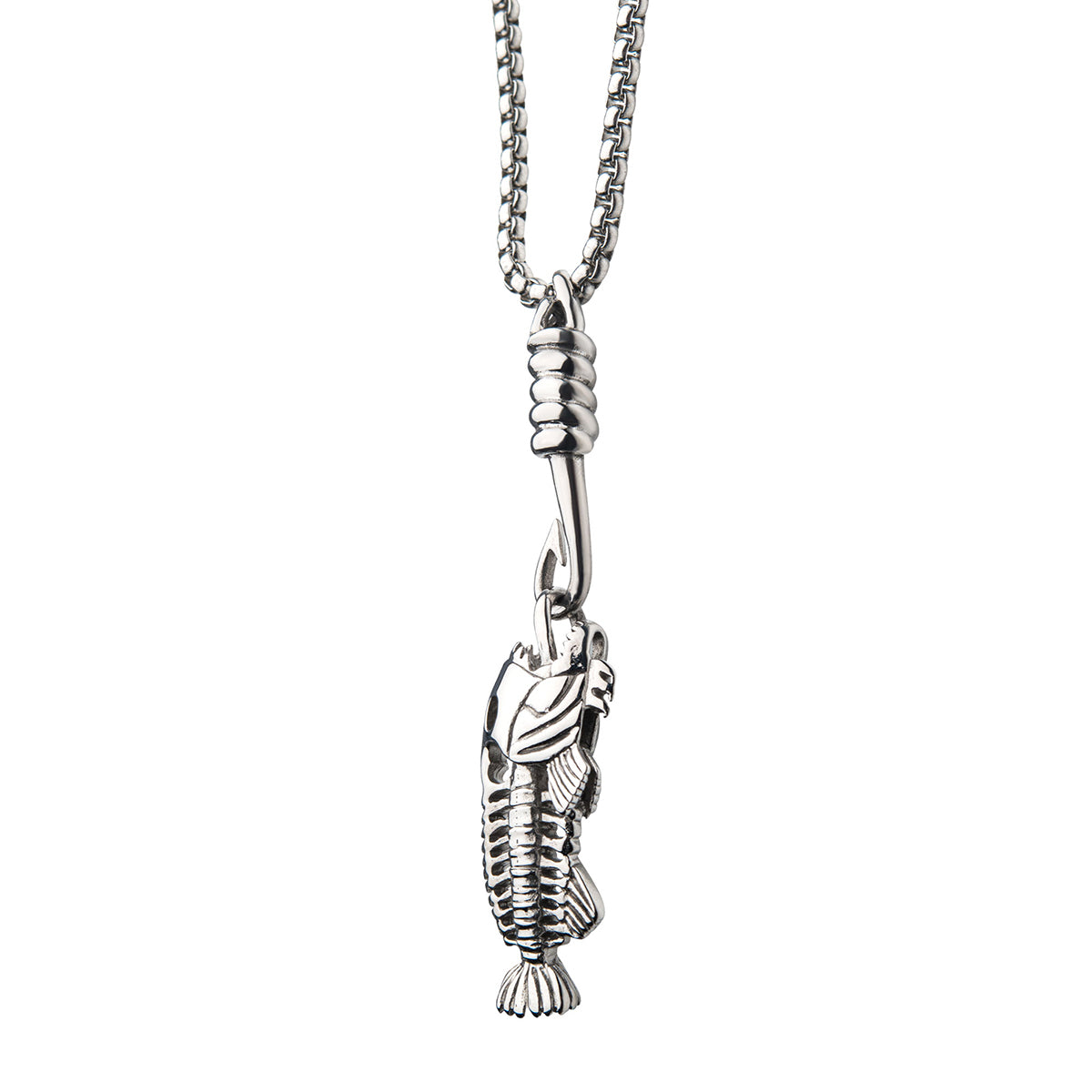 Polished Steel Fishbone Pendant with Hook & Box Chain