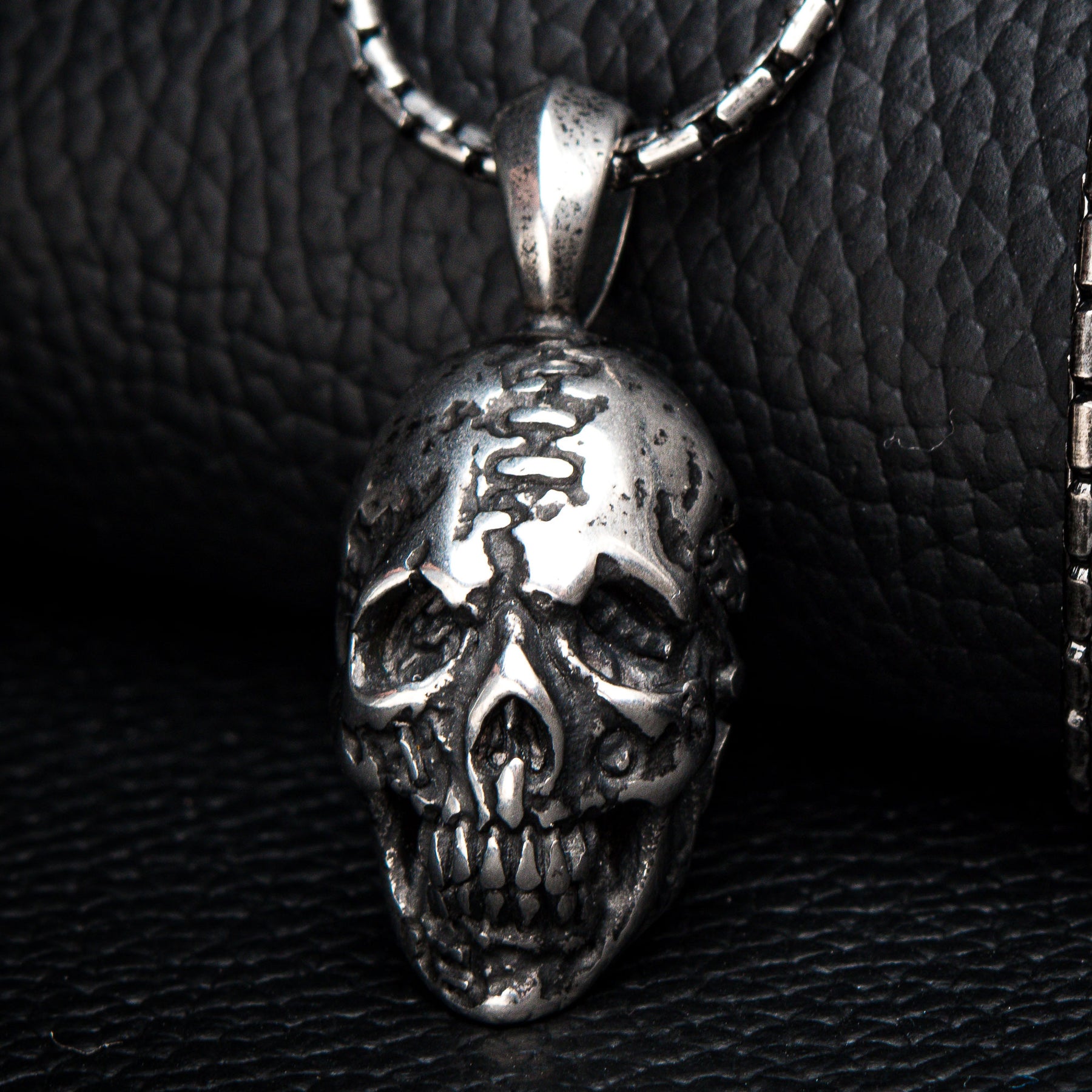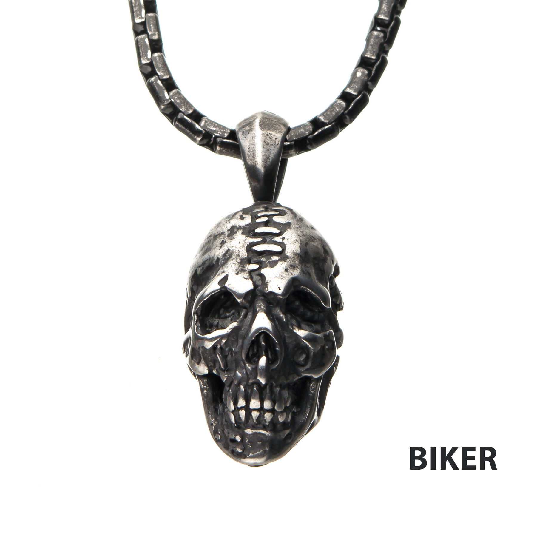 Stainless Steel Antique Silver Skull Head Pendant with Chain