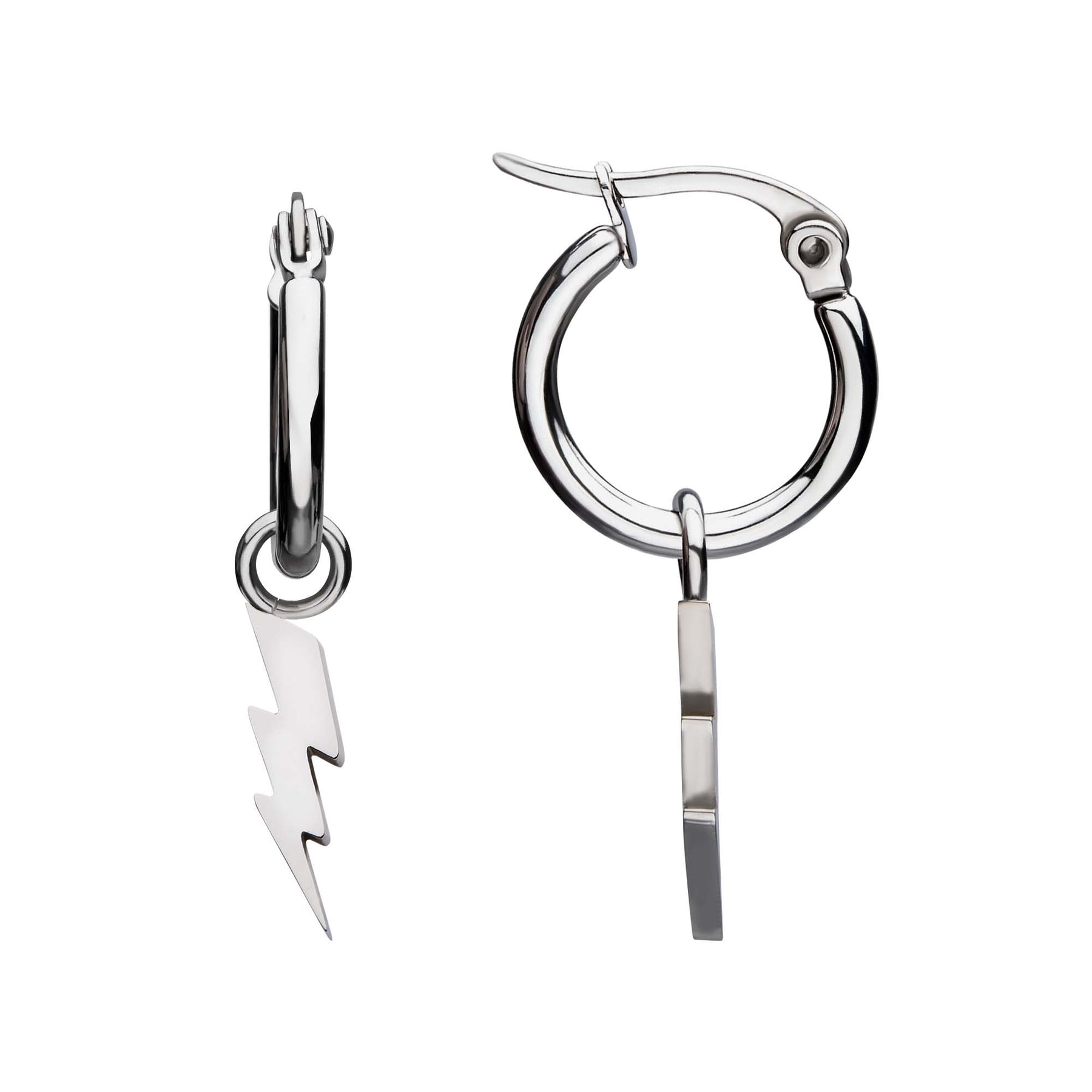 Stainless Steel Hoop Earrings with Lightning Bolt Charm