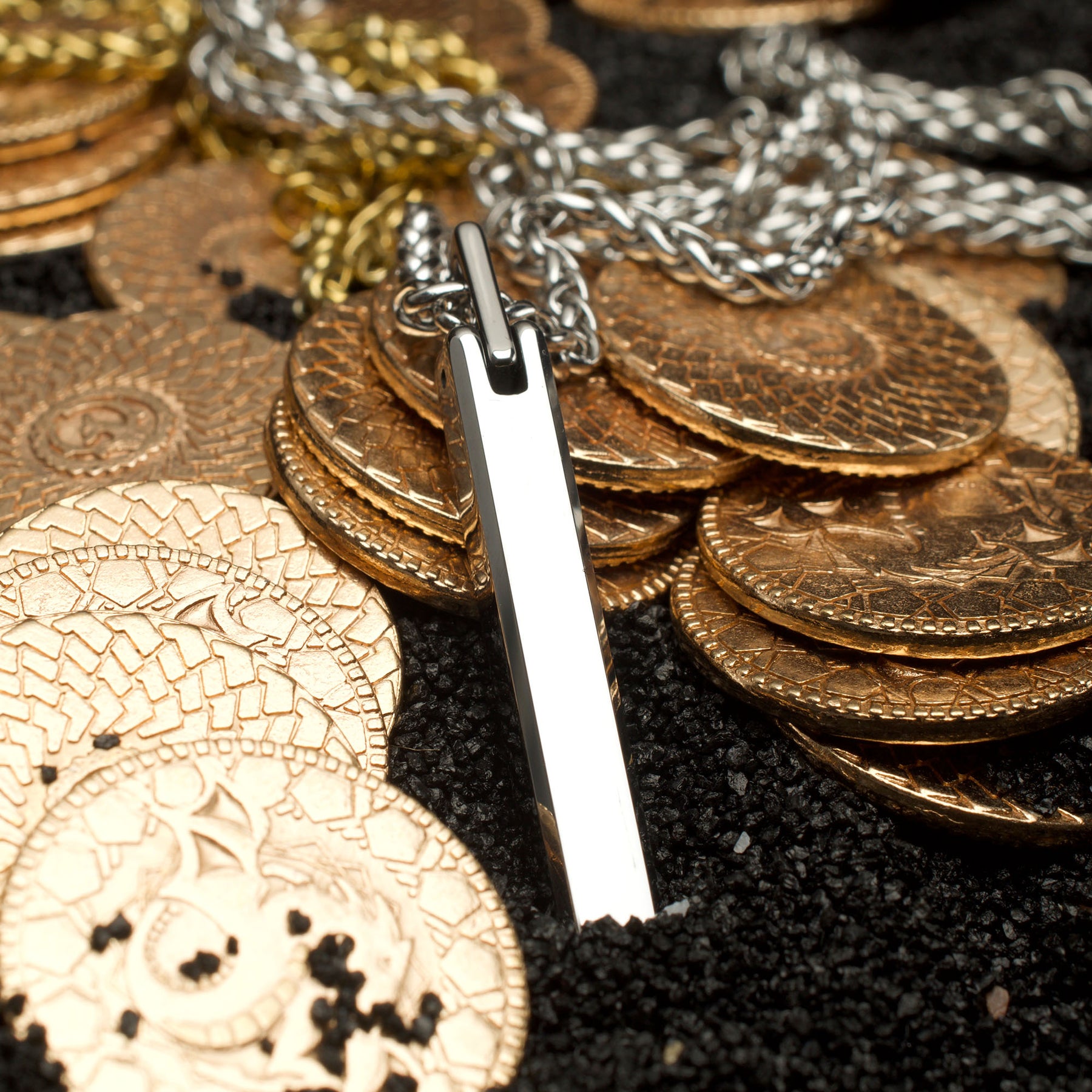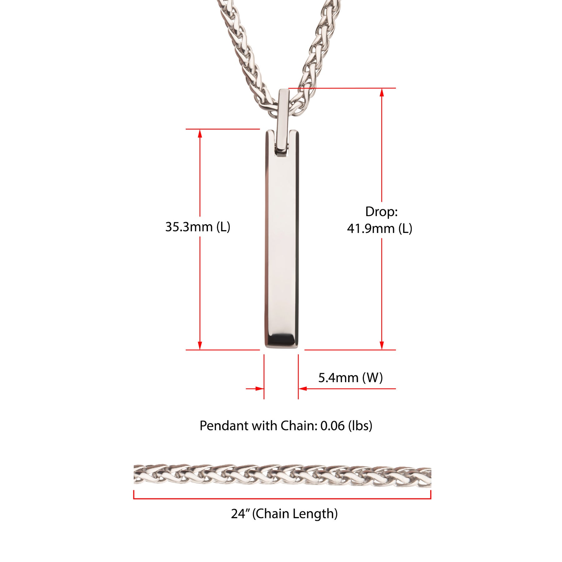 Men's Tungsten Carbide Monolith Engravable Pendant with 24"" long Stainless Steel Wheat Chain.. Pendant size: 35.3mm (L) x 5.4mm (W) | Drop: 41.9mm (L).