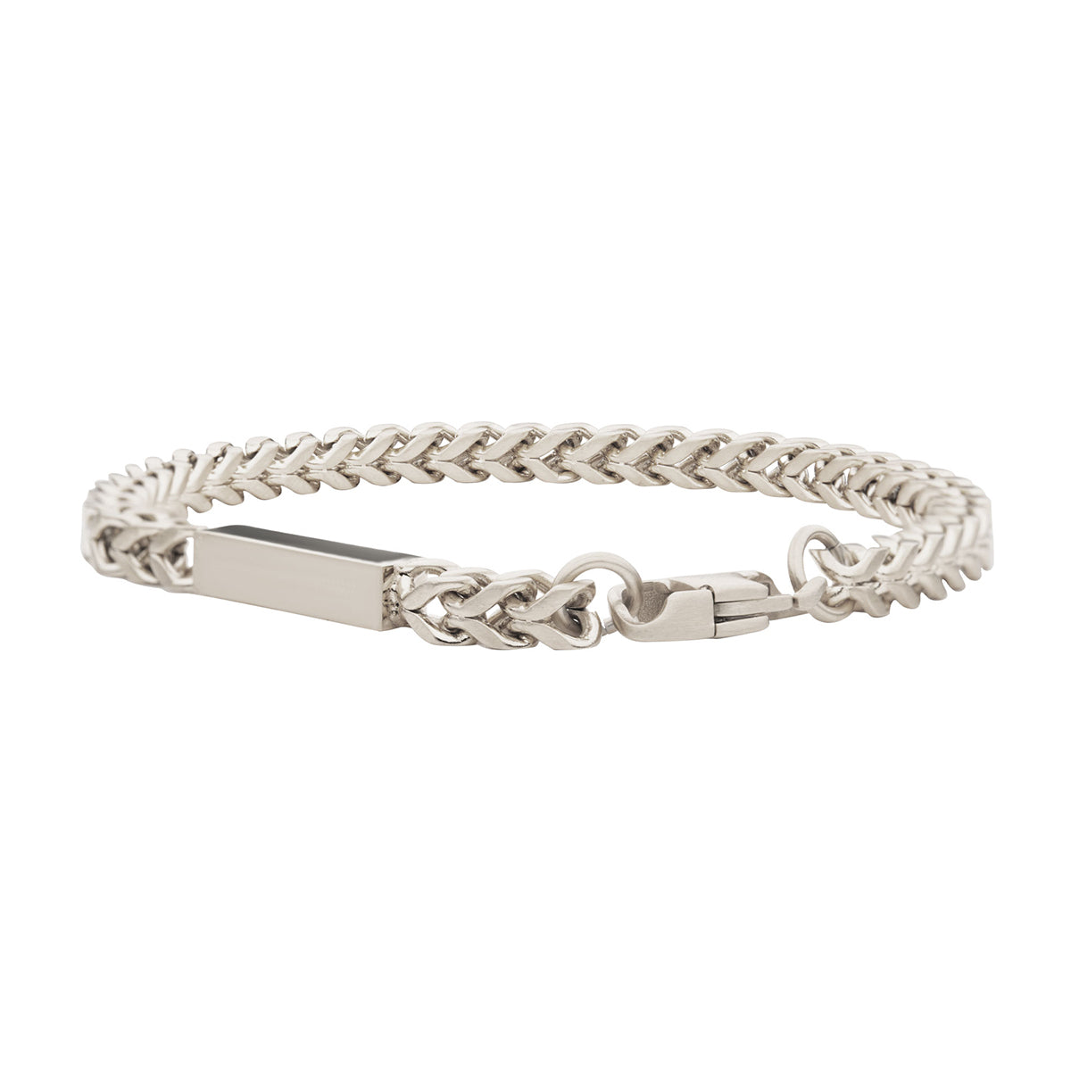 Men's Stainless Steel Engravable ID Block with 5mm Franco Chain Bracelet 8.5"" long with Lobster Clasp.